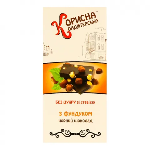 Шоколад Стевіясан 100 г чорн. з фундуком зі стевією