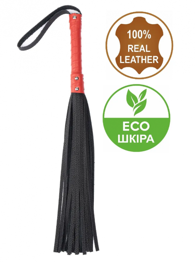Флоггер з комбінованої ECO шкіри Flirty COMBO Leather  Чорний та Червоний, довжина 53 см