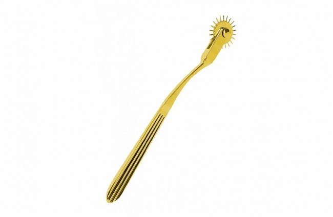 Колесо Вартенберга Taboom металевий девайс золотого кольору для нових сенсорних відчуттів. Шипи колеса активізують нервові закінчення, створюючи ефект поколювання на шкірі. Ідеально підходить для вивчення ерогенних зон і перевірки чутливості. Використовуйте маску для очей для посилення відчуттів. Легко очищається теплою водою з милом і антибактеріальним спреєм. Матеріал: метал. Виробник: Taboom.