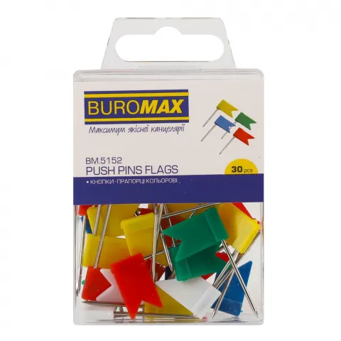 Кнопки-цвяшки BuroMax 30 шт. кольор. прапорці пласт. контейнер BM.5152