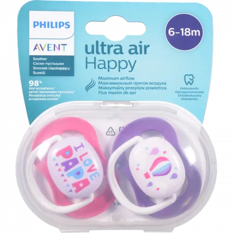 Пустушка Avent Ultra Air 6-18 міс. 2 шт. нічна д/дів. SCF376/22