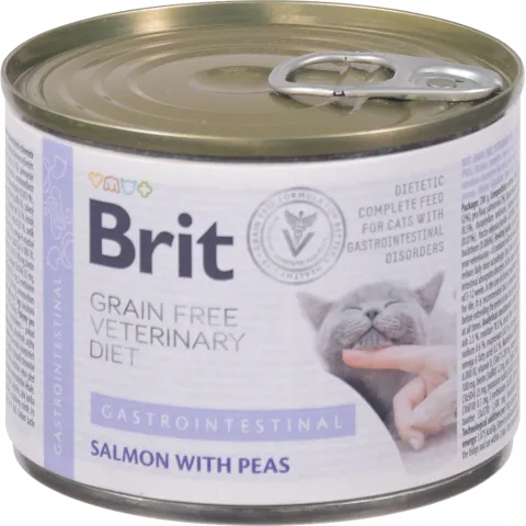 Корм д/котів Brit GF VD 200 г з/б Cans Gastrointestinal при поруш. травл. з оселедцем, лососем та го