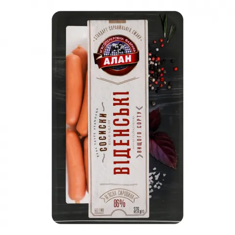 Сосиски Алан Віденські н/о в/ґ 376 г т/у