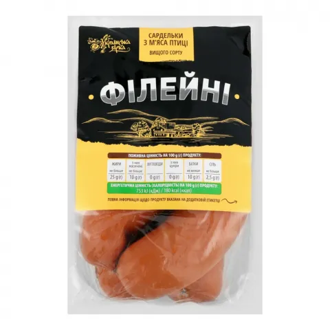 Сардельки Українська Зірка Філейні з м`яса птиці в/ґ (черева) ваг.
