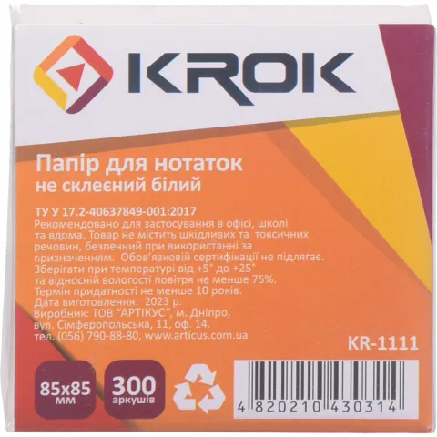 Блок паперу д/нотаток Krok 300 арк. 85х85 Білий