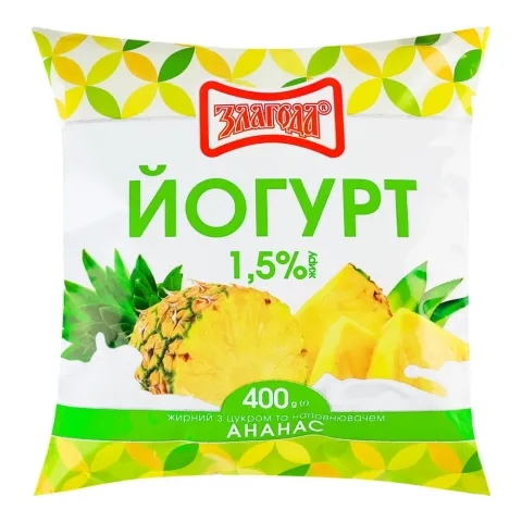 Йогурт Злагода 400 г 1/1,5 п/е Ананас