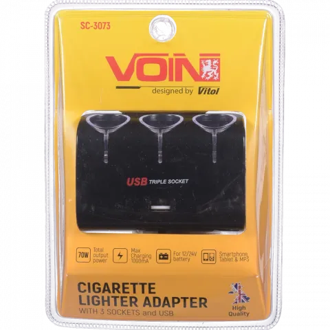 Подовжувач прикурювача Voin 3 вихід 1USB 1000mA 12/24V SC-3073